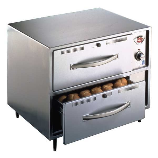 Double Drawer Warmer, Number of Drawers 2, Overall Depth 21 1/2 in, Overall Height 25 in, Overall Width 29 1/4 in, Holds (2) 12 in x 20 in x 6 in Inset Pans, Wattage 900 W, Current 7.5 A, Voltage 120V AC, Maximum Temperature 210 Degrees F, Minimum Operating Temperature 90 Degrees F, Includes Cord, Food Pan, Legs, Plug, Material Stainless Steel, Weight 102 lb