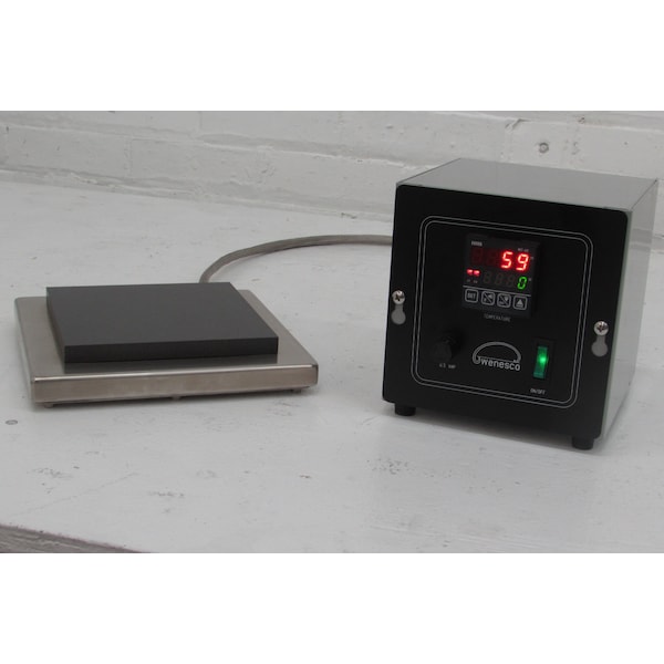 Hot Plate , Industrial Low Profile 6"x6"x.5" thick Anodized Alum Plate w/ Digital Controller - SS Housing 8"x8"x1.75"H