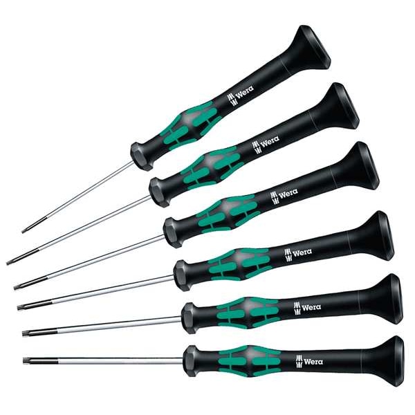 Precision Screwdriver Set, T6, T7, T8, T9, T10, T15, Number of Pieces 6, Includes Torx(R) HF T6 x 1 1/2 in, T7 x 2 3/8 in, T8 x 2 3/8 in, T9 x 2 3/8 in, T10 x 2 3/8 in, T15 x 2 3/8 in