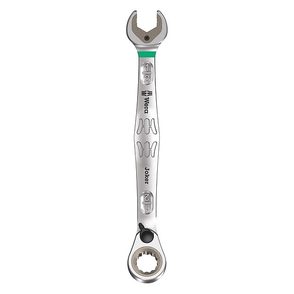 The WERA 05020078001 Ratcheting Wrench is the perfect tool for working with fasteners. The nickel chrome finish and alloy steel construction ensure that it will last through tough jobs. This ratcheting wrench has a 12-point open and box end, which allows you to adjust parts without having to reposition the wrench. With an overall length of 6 5/8 in., this SAE combination wrench offers easy handling and control. The one piece handle is made of alloy steel, giving it strength and durability. If you need a reliable ratcheting wrench for your next project, choose the WERA 05020078001 Combination Wrench.