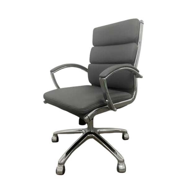 Liberty Series Modern Ribbed Mid-Back Upholstered Executive Chair in Grey Vinyl with Chrome Frame