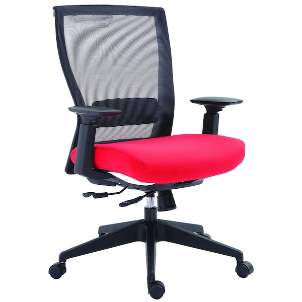 Mia Series Square Mesh Back Adjustable Task Chair with Lumbar, Seat Slide, Red Seat and Black Frame