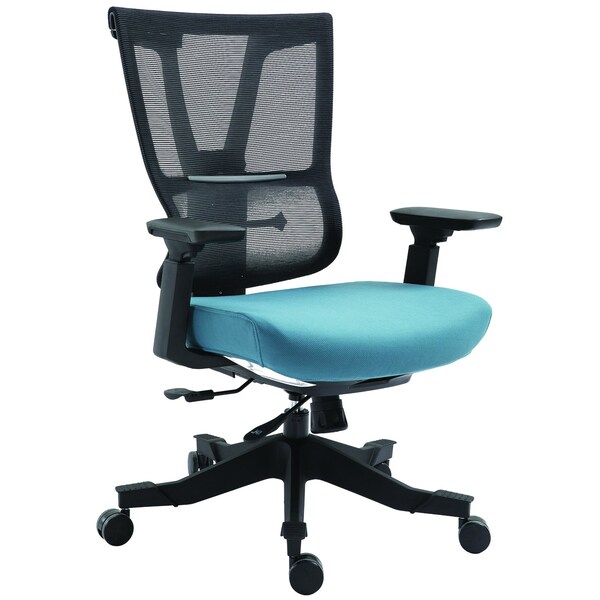 Moov Series Flex Mesh Back, Multifunction Chair with Adjustable Arms, Ocean Blue Seat, Black Frame