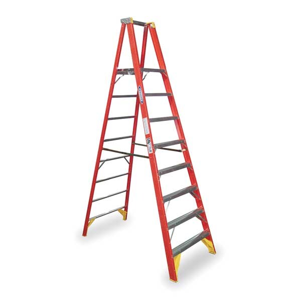 Platform Stepladder, Material Fiberglass, ANSI Type IA, Ladder Height 10 ft, Load Capacity 300 lb, Number of Steps 8, Base Spread 66.6 in, Bottom Width 33 7/8 in, Step Depth 3 in, Step Tread Ribbed, Series P6200, Includes Slip Resistant Traction Tred Steps, Reinforced Top Connectors and A Safety Guard Rail, EDGE Bracing, Standards ANSI A14.5-2007, OSHA Compliant, Rung/Step Spacing 12 in