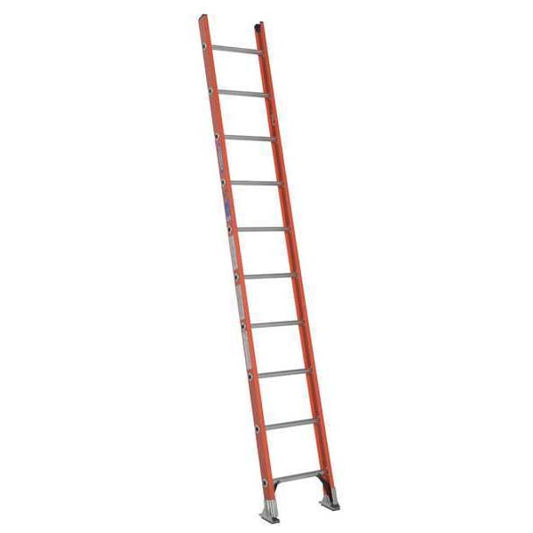 10 ft. Overall H, Straight Ladder, Fiberglass, 10 Steps, 300 lb Load Capacity