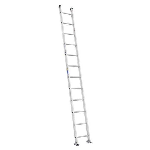 Straight Ladder, Ladder Height 12 ft, Overall Width 16.9 in, Material Aluminum, Load Capacity 375 lb, Number of Rungs 12, Top to Bottom Rung 11 ft, Rung Dia. 1 1/4 in, Rung/Step Spacing 12 in, Rung Width Not Applicable, Top Step Height 12 ft, Rung Shape Round, Standards ANSI A14.2-2007, OSHA Compliant, ANSI Type IAA, Net Weight 24.0 lb