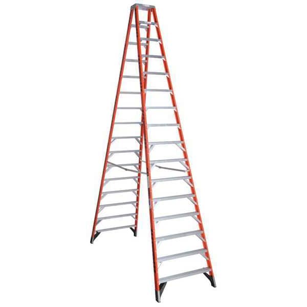 16 ft. Fiberglass Twin Stepladder, 15 Steps, 300 lb Load Capacity, 120 in Base Spread