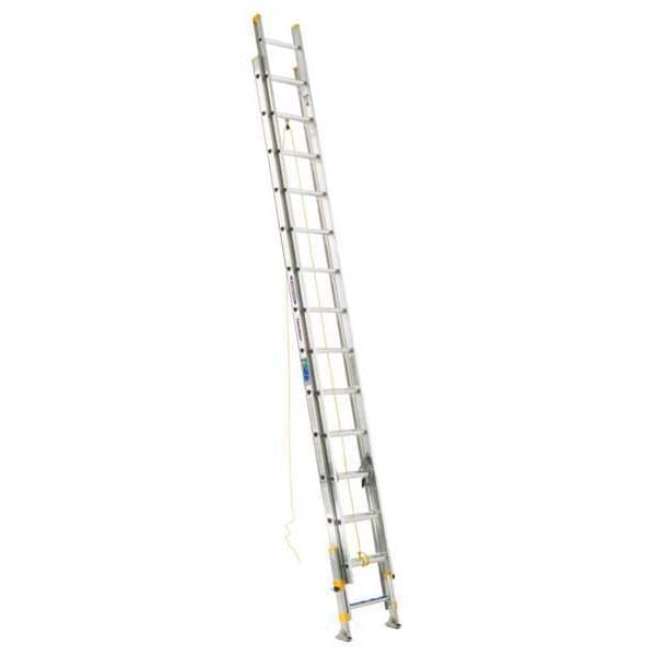Extension Ladder, Material Aluminum, Industry Ladder Size 28 ft, Extended Ladder Height 25 ft, ANSI Type I, Load Capacity 250 lb, Adjustable Increments 3/8 in to 8 1/4 in, Bottom Width 20 3/4 in, D1800-2EQ Series, Rail Type I-Beam, Shoe Design Dual Action Shu-Lok(R), Includes Mar Resistant End Caps, Rung Shape D-Rung, Closed Height 14 ft 6 in, Section Length 168 in, Net Weight 56 lb, Rung/Step Spacing 12 in