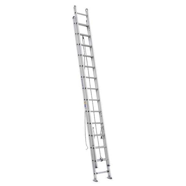 Extension Ladder, Material Aluminum, Industry Ladder Size 28 ft, Extended Ladder Height 25 ft, ANSI Type IAA, Load Capacity 375 lb, Adjustable Increments 12 in, Bottom Width 19 1/4 in, D500-2 Series, Rail Type Aluminum, Shoe Design Swivel, Rung Shape D-Rung, Closed Height 14 ft, Section Length 168 in, Net Weight 65.5 lb, Rung/Step Spacing 12 in