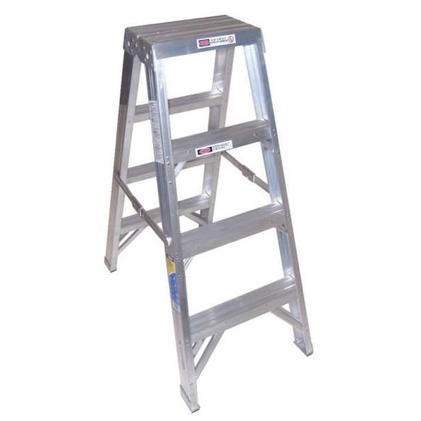 Stepladder, Material Aluminum, ANSI Type IAA, Ladder Height 4 ft, Load Capacity 375 lb, Number of Steps 3, Base Spread 36.3 in, Bottom Width 21 1/4 in, Step Depth 3 in, Step Tread Ribbed, Series T400, Standards ANSI A14.2-2007, OSHA Compliant, Rung/Step Spacing 12 in