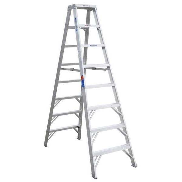 Twin Stepladder, Material Aluminum, ANSI Type IA, Ladder Height 8 ft, Load Capacity 300 lb, Number of Steps 7, Base Spread 64 in, Bottom Width 28 1/4 in, Step Depth 3 in, Step Tread Ribbed, Series T370, Standards ANSI A14.2-2007, OSHA Compliant, Rung/Step Spacing 12 in