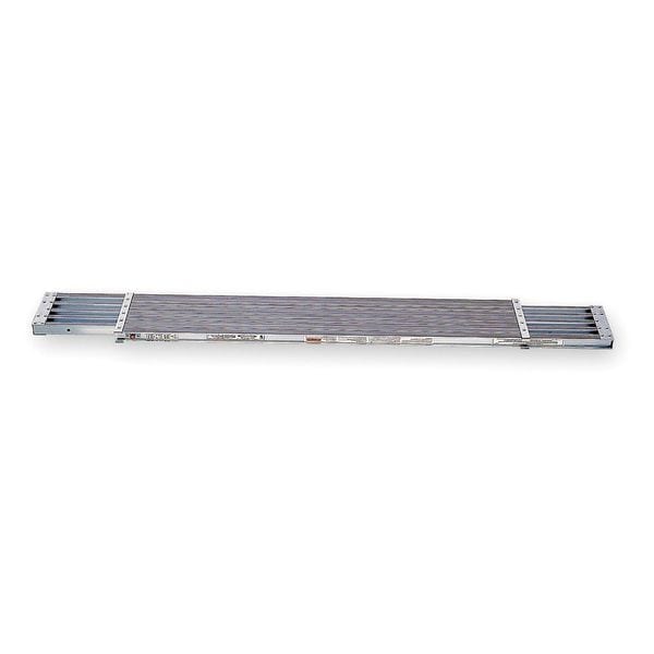 Scaffold Extension Plank, Overall Length 6 to 9 ft, Overall Width 14 in, Overall Height 2.5 in, Material Aluminum, Load Capacity 250 lb, Series PA200, Standards ANSI A10.8-2001, OSHA Compliant