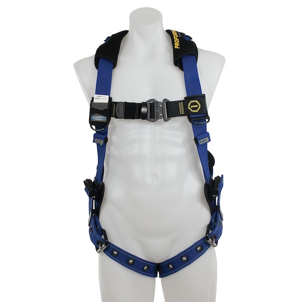 Harness, Harness Style Vest, Specialty Working Conditions Not Applicable, Safety Features Trauma Strap, Chest Strap Buckles Quick-Connect, Harness Color Black/Blue, Harness D-Ring Material Aluminum, Harness Sizing M/L, Includes Padding Yes, Leg Strap Buckles Tongue, Padding Location Back, Leg, Shoulder, Torso Adjustment Cam, Weight Capacity 425 lb, Harness Application General Use, D-Ring Locations Back, RFID Equipped No, Industry Construction, General Industry