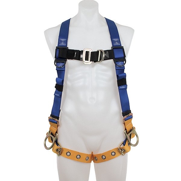Harness, Harness Style Vest, Specialty Working Conditions Not Applicable, Safety Features Trauma Strap, Chest Strap Buckles Mating, Harness Color Black/Blue/Yellow, Harness D-Ring Material Steel, Harness Sizing M/L, Includes Padding No, Leg Strap Buckles Tongue, Padding Location No Padding, Torso Adjustment Mating, Weight Capacity 425 lb, Harness Application Climbing, Positioning, D-Ring Locations Back, Chest, Hips, RFID Equipped No, Industry Construction, General Industry