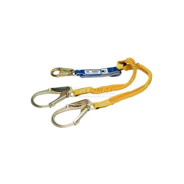 Werner DeCoil Stretch Twinleg Lanyard, 6'L, Snaphooks W/ Rebar Hook
