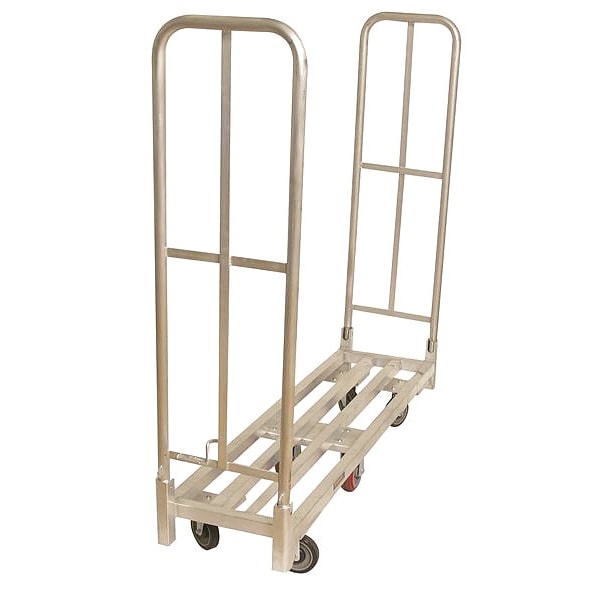 Platform Truck, Load Capacity 1,750 lb, Overall Height 61 in, Overall Length 64 in, Overall Width 16 in, Deck Construction Open, Deck Material Aluminum, Deck Gauge 1.5 mm, Deck Height 9 1/2 in, Deck Length 59 1/2 in, Deck Width 16 in, Deck Surface Smooth, Frame Material Aluminum, Handle Type Folding, Color Aluminum