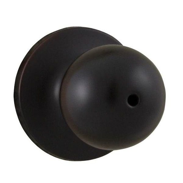 Mechanical, Knob, Cylindrical, Lockset Function Privacy, Lockset Grade 2, Knob Style, Oil Rubbed Bronze Lockset Finish, Keyway Type None, Key Type Not Keyed, Standards ANSI, ADA Compliant No, Lockset Fire Rating Not Rated, Backset 2-3/8 in or 2-3/4 in, Ligature Resistant No, For Use With Interior Doors, Includes Mounting Hardware, Item Knob Lockset, Key Material Nickel Silver, Knob Material Zinc, Location Type Residential, Lockset Performance Strength Light Duty, Number of Keys 0, Pins 0