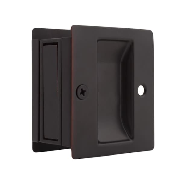 Pocket Door Lock, Sliding Door, Steel, Brown, Oil Rubbed Bronze Finish, Length (In.) 2 1/2 in, Height (In.) 2 1/4 in, Width (In.) 1 5/16 in, Notch Mounting, Number of Wheels 0, Steel, Hardware Included, Requires Door, For Use With Passage Pocket, Sliding Doors