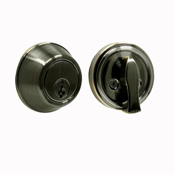 If security, safety, and style are important to you, then Weslock is your choice for quality hardware for your home. Not only are Weslock door handle and deadbolt products strong and long lasting, but they also offer a beautiful aesthetic for your home. With designs that enhance the look and feel of your home and details, such as concealed installation screws, that merge function and form, Weslock offers a product unmatched by the competition. Single Cylinder Deadbolt with Adjustable Latch and Deadbolt Strike Up To 2 1/4in Door Thickness Antique Brass Finish.