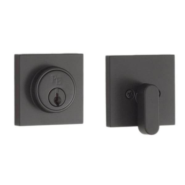 Square Single Cylinder Deadbolt, Adjustable Latch and Round Corner Full Lip Strike Matte Black