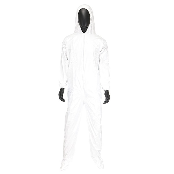 Disposable Coveralls, Ankle Closure Elastic, Attached Hood Yes, Breathable Back Style Full, Closure Features Zipper, Closure Type Zipper, Color White, Coverall Style Hooded Coverall, Cuff Style Elastic, Features Comfortable Sizing, Latex-Free, Low Linting, Hood Style Elastic, Includes Boot Covers Yes, Package Quantity 25