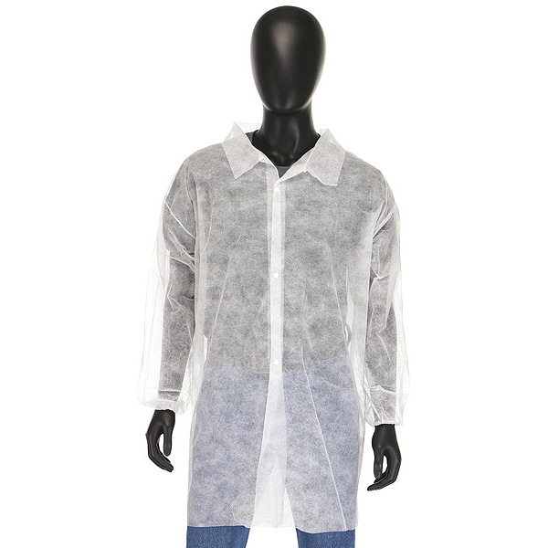 Lab Coat, Polypropylene, Snaps Closure, White, 2XL, 30 PK