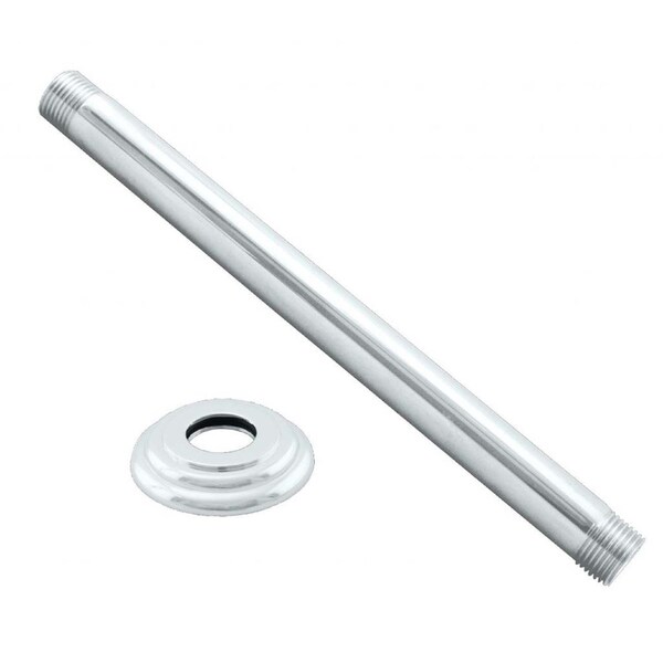 Use this plated, solid brass, 1/2 in. IPS, ceiling mounted shower arm, for small projection, ceiling mounted rain shower heads of all diameters. 6 in. long. Decorative, machined brass flange included:. 1/2 in. x 4 in. ceiling arm and D3800 flange. Heavy Duty Flange. Lead Free Brass Nipple.