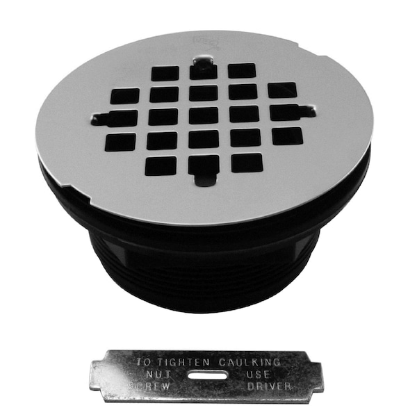 The Westbrass 4-1/4 in. shower drain assembly fits pre-formed shower stall floors. It features a metal construction grid in Polished Nickel and a plastic body that fits 2 in. ABS or PVC drains.