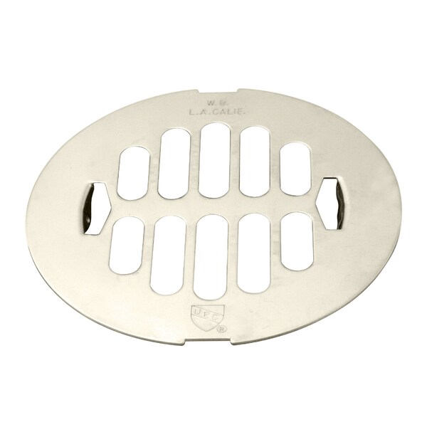 4-1/4" OD Brass Snap-in Shower Strainer Grid Drain Cover, Polished Nickel