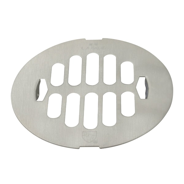 4-1/4" OD Brass Snap-in Shower Strainer Grid Drain Cover, Satin Nickel
