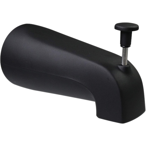 5 in. long, 1/2 in. IPS, front inlet, diverter zinc tub spout. Fully finished exterior. Slightly deeper spout for wider tub decks; to prevent splashing. Diverter spout for shower operation.