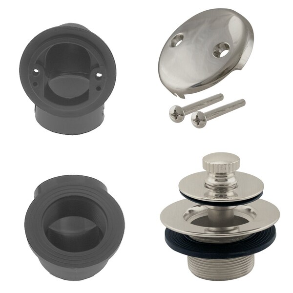 ABS 1-1/2" Plumber's Pack Pull & Drain Bathtub Drain with Two-Hole Overflow, Satin Nickel