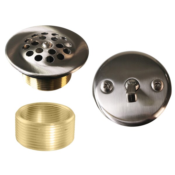 This Westbrass universal trim kit fits almost any tub. It includes a fine thread beehive grid tub drain plug with coarse thread converter bushing and a 2-hole trip lever faceplate with screws. Available in a variety of finishes, this item is sure to complement your existing fixtures.