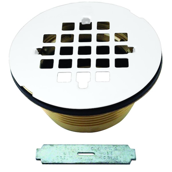 Brass Body Compression Shower Drain W/ Grid in Powdercoated White