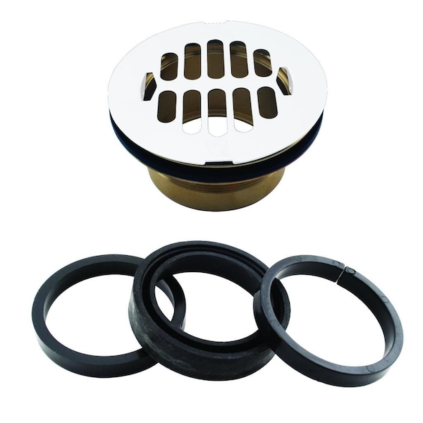 This Brass shower drain body, mounts to fiberglass, acrylic and solid surface shower pans and stalls. The drain plumbs with 2 in. sch. 40 pipe, secured by a rubber compression swedgelock gasket driven in place by the installer. This drain uses the D3198 replacement grate. Brass body shower drain, with a brass or stainless steel grate. Fits 2" ABS or PVC pipe. Uses driven no-caulk rubber swedgee. Drain rim is fully covered by the grate.