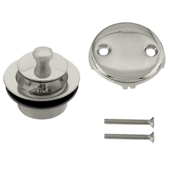 Coarse Thread Twist & Close Bathtub Drain Trim with Two-Hole Overflow, Satin Nickel