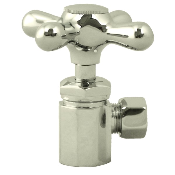 Cross Handle Angle Stop Shut Off Valve 1/2-Inch IPS Inlet W/ 3/8-Inch Compression Outlet in Polished