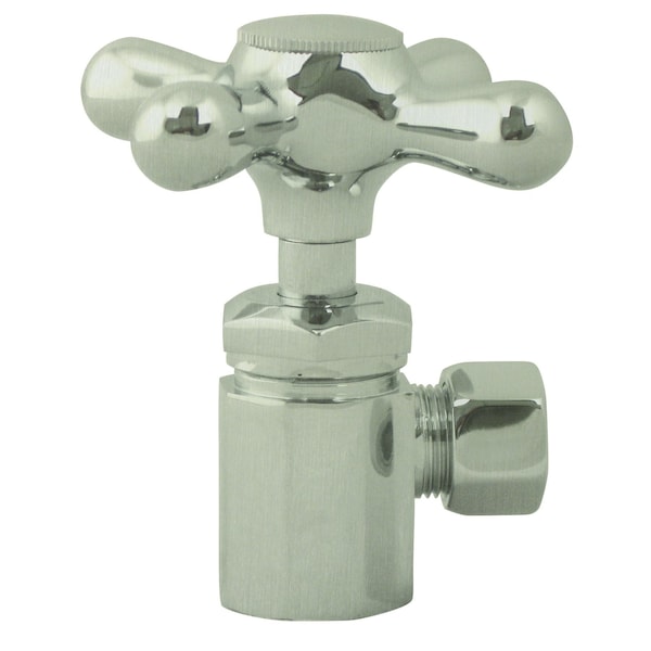 Cross Handle Angle Stop Shut Off Valve 1/2-Inch IPS Inlet W/ 3/8-Inch Compression Outlet in Satin Ni