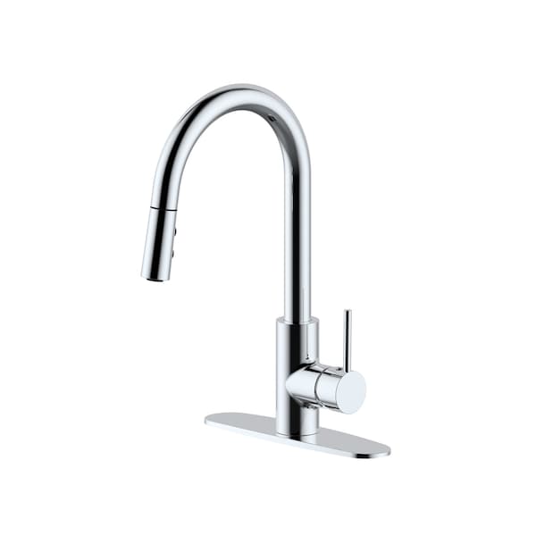 Dual Spray Push Button Mode Kitchen Faucet with Pull Down Sprayer Head, Polished Chrome