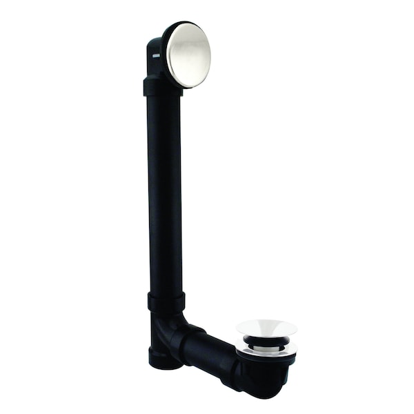This exquisite ABS drain features a Hidden overflow, providing that clean, chic look. The tub drain uses an oversized European tip-toe drain. ADA approved, press once to close and again to open. Sch. 40 ABS fittings and pipes glue together for complete adjustability, making this ideal for extra deep or very long runs.