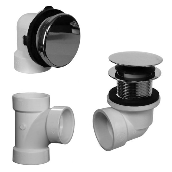 This Sch. 40 PVC plumber's pack includes the two hole top elbow, coarse thread bottom elbow, No-Hole Illusionary overflow cover with Lift and Turn strainer and closure. Just what a plumber needs - no tee or pipe is included. Tip Toe drain to open and close. PVC Top Elbow and Shoe Elbow Included.