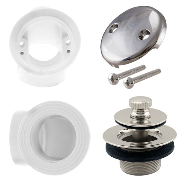PVC 1-1/2" Plumber's Pack Pull & Drain Bathtub Drain with Two-Hole Overflow, Polished Nickel