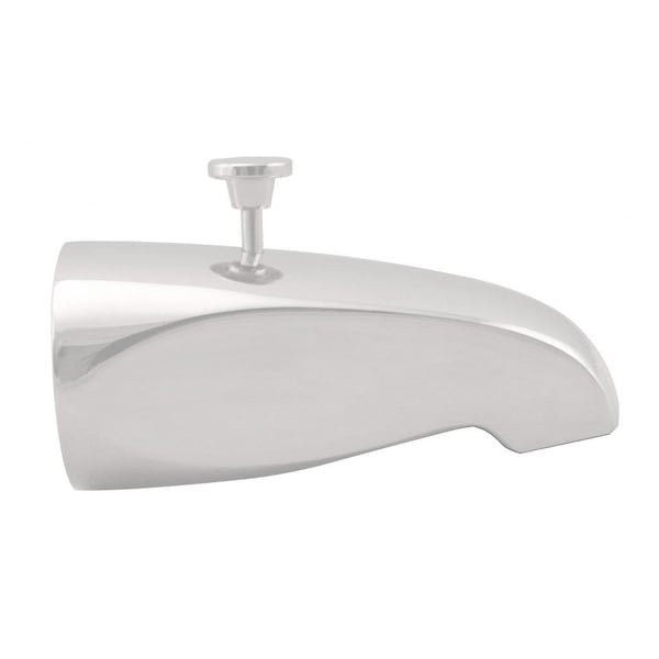 Whether you want to add a new style to your bathtub or replace a rusty older unit, replacing a tub spout is a simple project that can be completed in very little time. Simply choose the finish that works best with your shower. This Westbrass 5-1/2 in. long unit, provides a spout with a shower head diverter. Tub spout unthreads by turning counterclockwise from affront rear 1/2 in. or 3/4 in. IPS pipe nipple. Replacement spout threads back on again, using the 3/4 in. rear mount threads without adapter, or 1/2 in. IPS with adapter.