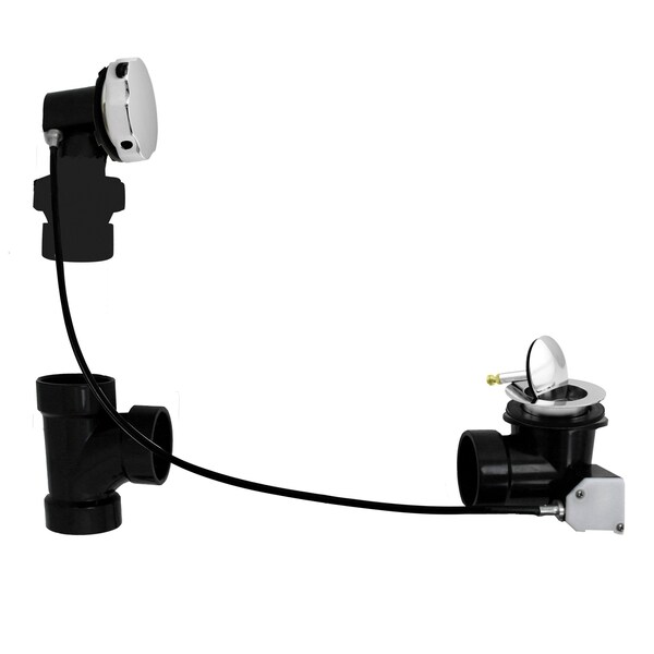 Westbrass D50A35BJ Schedule 40 ABS Cable drive bath waste with 35-Inch Cable and ball joint top elbow for tub adjustability. 1-1/2-Inch Schedule 40 ABS Cable Drive Bath Waste uses all Glue Type fittings - Tubes Not Included. Rotate overflow handle to close drain. Turn back to open.