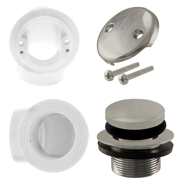 Sch. 40 PVC 1-1/2" Plumber's Pack Tip-Toe Bathtub Drain & Two-Hole Overflow, Satin Nickel