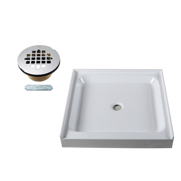 Shower Pan 36 x 36 3-Wall W/ Center Solid Brass Drain W/ Modern Cross Grid in Polished Chrome
