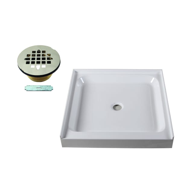 Shower Pan 36 x 36 3-Wall W/ Center Solid Brass Drain W/ Modern Cross Grid in Satin Nickel