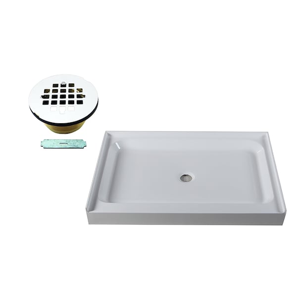 Shower Pan 48 x 36 3-Wall W/ Center Solid Brass Drain W/ Modern Cross Grid in Powder Coat White