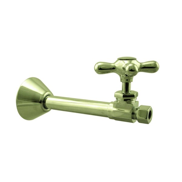 This Angle Stop Kit with Cross Handle is the perfect compliment for water closets, faucets or tubs. It uses a 5/8 in. ID (1/2 in. Copper) Inlet, designed for soldering the valve in place, and a 1/2 in. OD Compression outlet with nut and ferrule. The valves use traditional compression closure for positive seal. It is available in a variety of finishes.