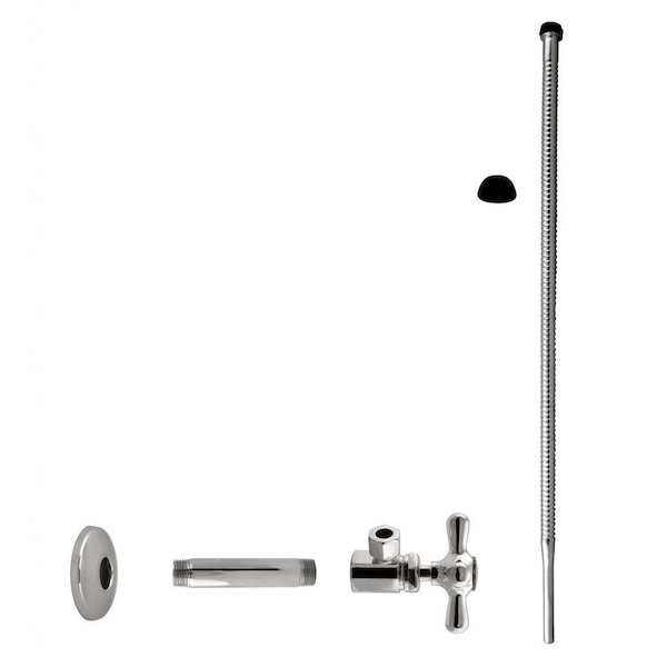 This Angle Stop Kit with Cross Handle is the perfect compliment for sinks and toilets. It uses a 1/2 in. IPS threaded Inlet with a 3/8 in. OD Compression outlet with nut and ferrule. The kit features a 20 in. corrugated riser with seals for sink or water closet. The valve uses traditional compression closure for positive seal. It is available in a variety of finishes.